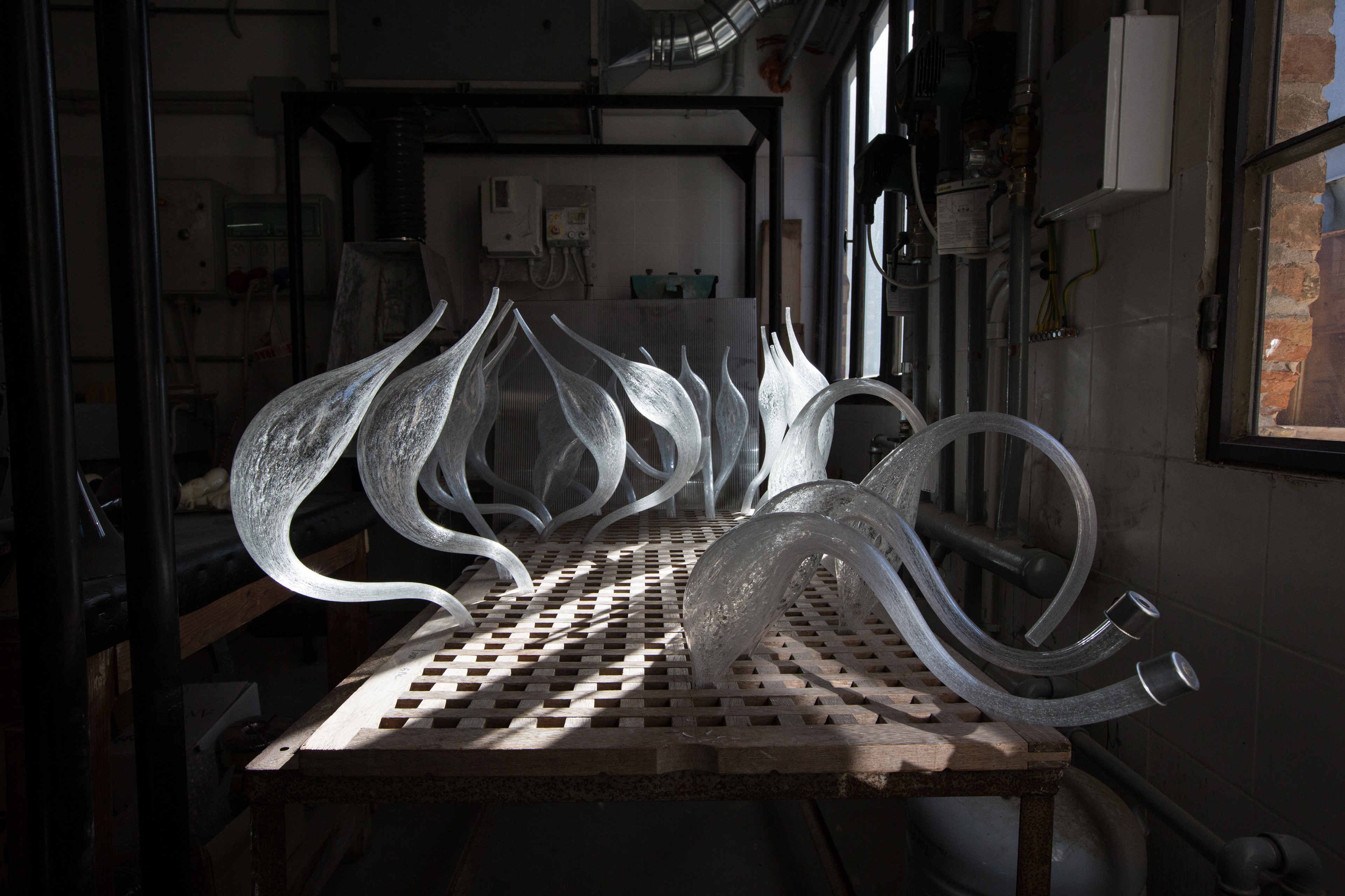 https://www.lu-murano.it/ Fabio fornasier and his team in murano creating Blown-glass chandelier